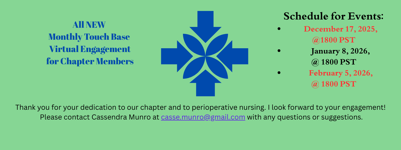 As a chapter of the Association of periOperative Registered Nurses (AORN), our mission is to promote safety and optimal outcomes for patients undergoing operative and other invasive procedures by providing practice support and professional development opportunities for our members in the San Francisco area.